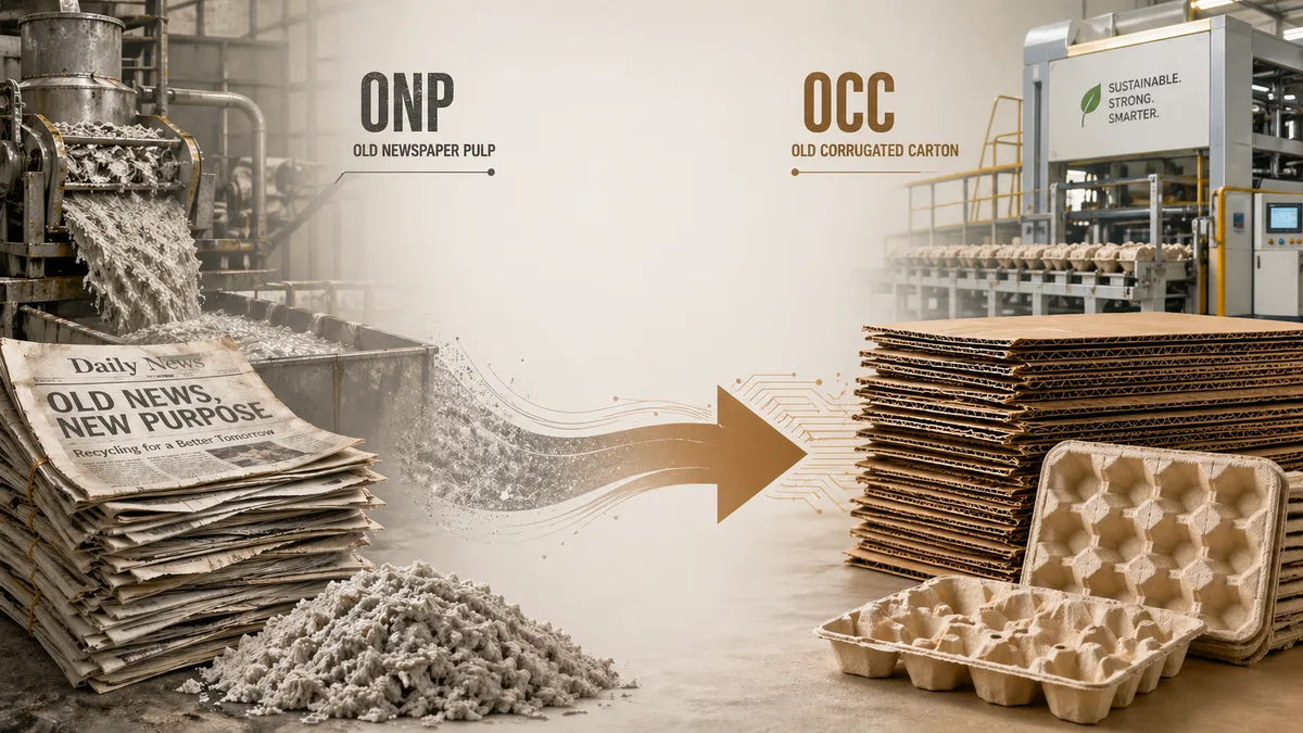 Egg tray molded fiber production has run on Old Newspaper (ONP) for decades — but ONP is disappearing. Print-newspaper consumption is falling structurally, ONP prices have climbed 40–60% in key markets, and supply reliability is deteriorating. The only viable replacement fibre at scale is Old Corrugated Cardboard (OCC), which is abundant thanks to e-commerce growth — but OCC is heavily contaminated, and most ONP-era egg tray lines simply cannot run it well. This guide explains why the ONP-to-OCC transition is inevitable, what changes in stock preparation, and how Parason's high-consistency pulping, ceramic cleaning and three-stage screening system delivers under-2% egg breakage on 100% OCC feed.
